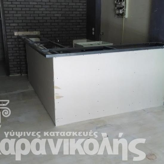Δημιουργία γύψινων πλαισίων στην πρόσοψη του καταστήματος για την τοποθέτηση διαφημιστικού υλικού , κατασκευή διαχωριστικών , κατασκευή διακοσμητικών δοκαριών